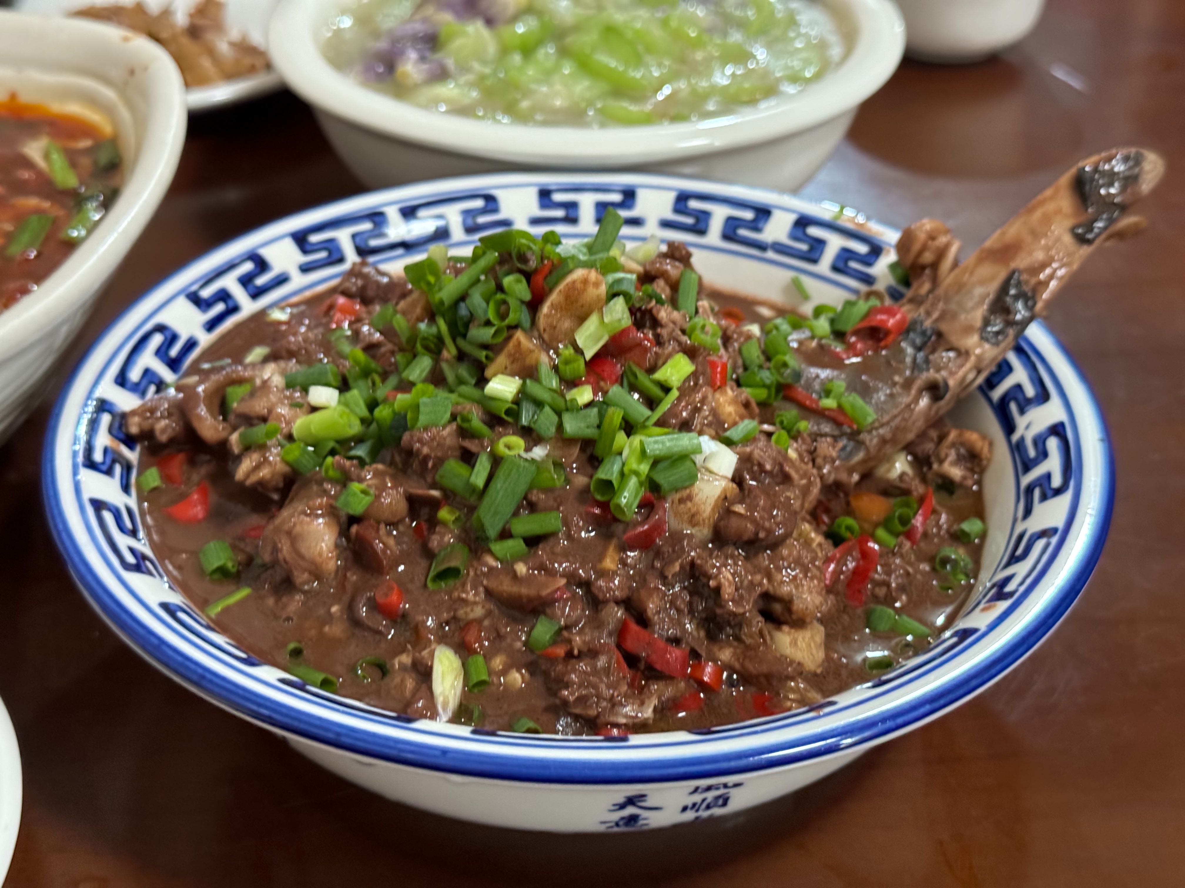 周四晚上,我坐上了前往萍乡站的硬卧火车,周五下午抵达萍乡。当天下午,已经有一位伙伴从湖南过来,我们晚上提前会和,一起吃了晚饭。血鸭这种做法对我来说是第一次吃,味道不错,但骨头都切碎了,吃起来有些麻烦。另一道菜是丝瓜,虽然在北方很常见,但用来炒木槿花,对我来说也是全新的体验。