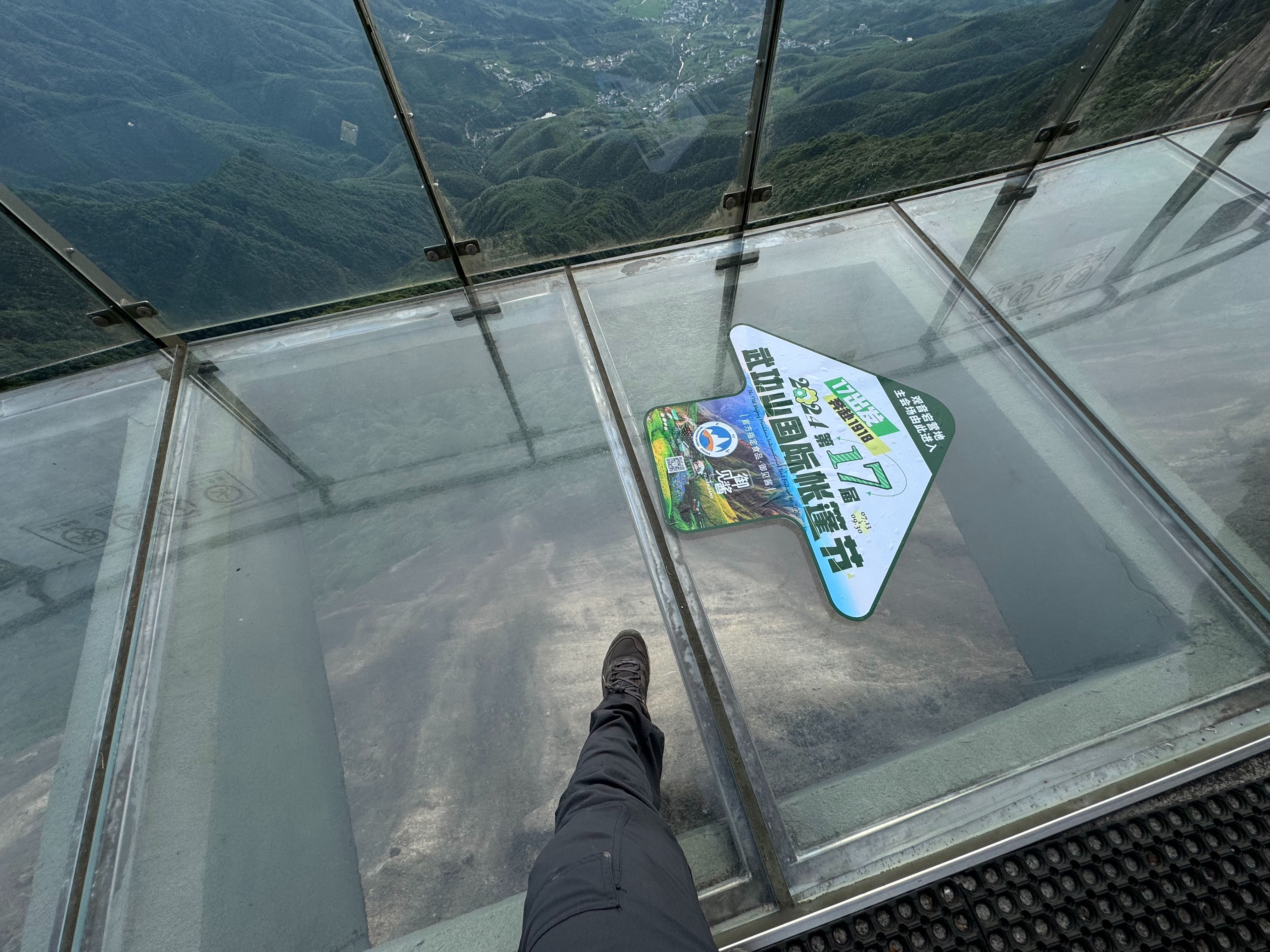 下金顶之后前往露营地有两条路线,一条上山再下山的山间小路,一条是平坦的栈道,我们几个大多选择了栈道,不想再去爬上爬下。没想到,栈道中有一大段是玻璃栈道,对第一次走玻璃栈道的我来说,并不是很想再走第二次了。