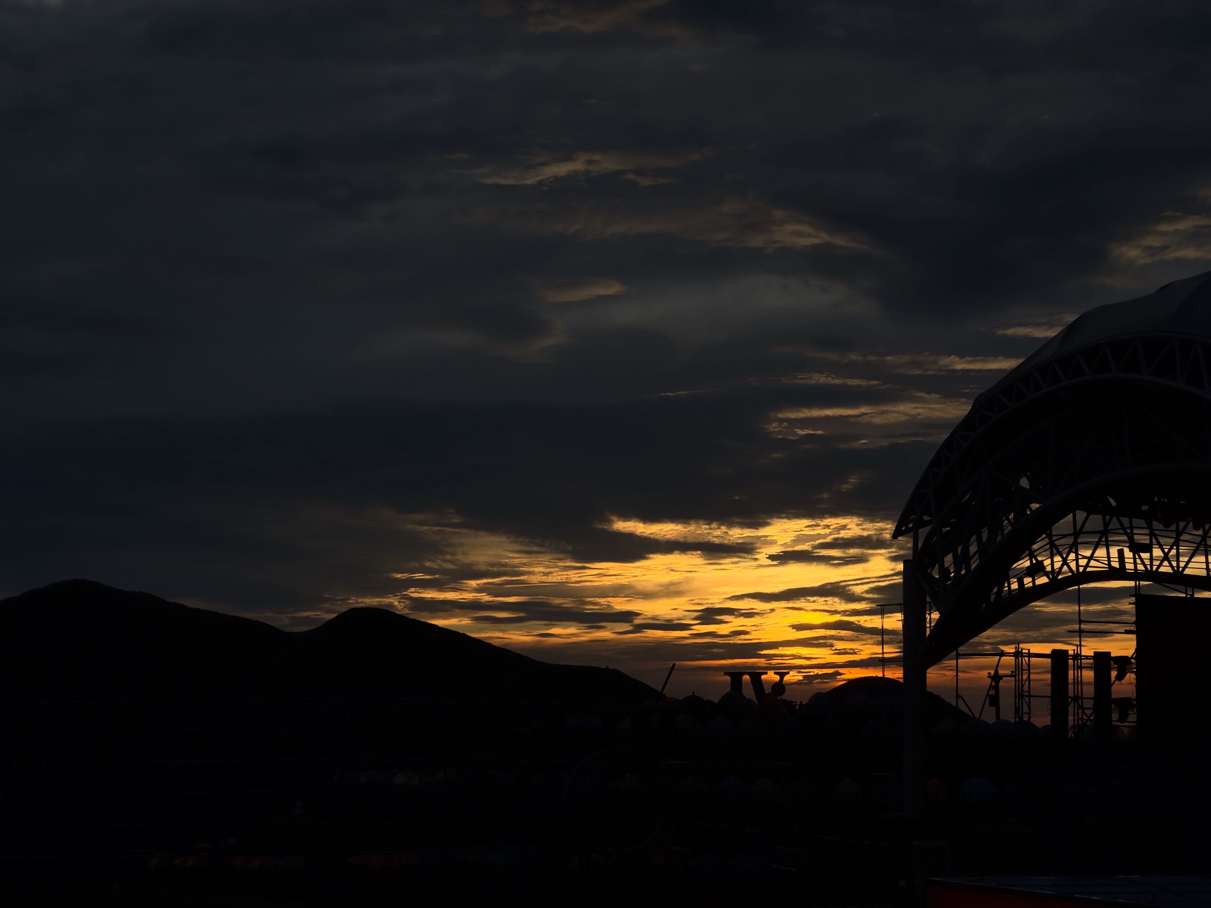 这天我们 5 点起床开始洗漱,去洗漱的路上看到另一座山头看日出的平台上早已经挤满了人。等我们洗漱完吃早餐时,太阳已经开始升起来了,待到我们出发时,即使不在山头上也能看到太阳。