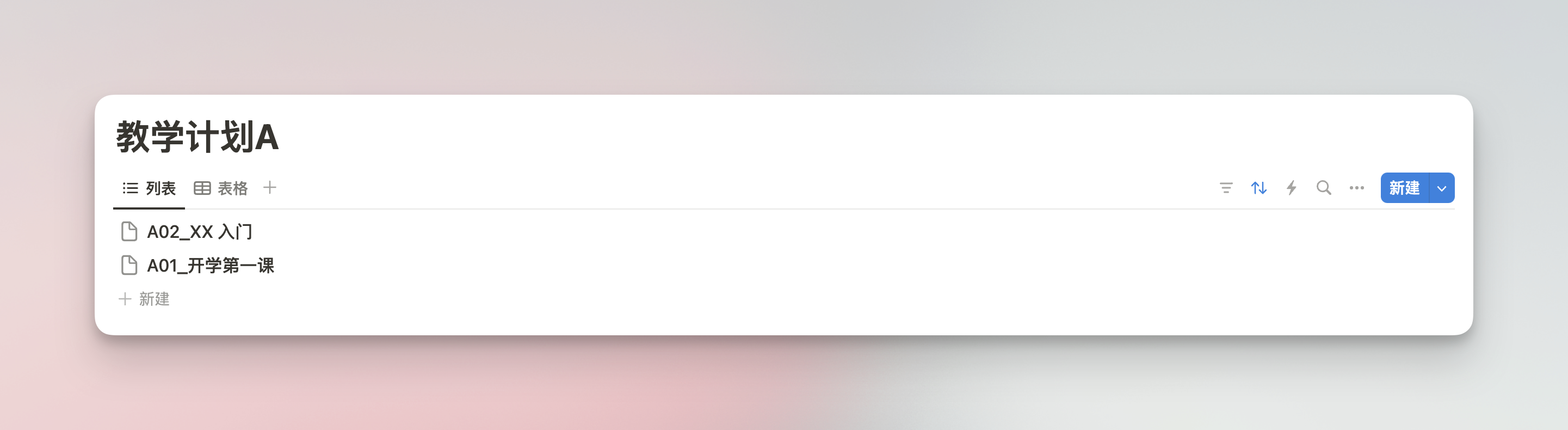 日常备课时,点击”教学计划A“下方的「新建」按钮,添加新的课时。课时命名上,我采用了 A01_课时名 的格式(`A/B分别表示上下学期)。