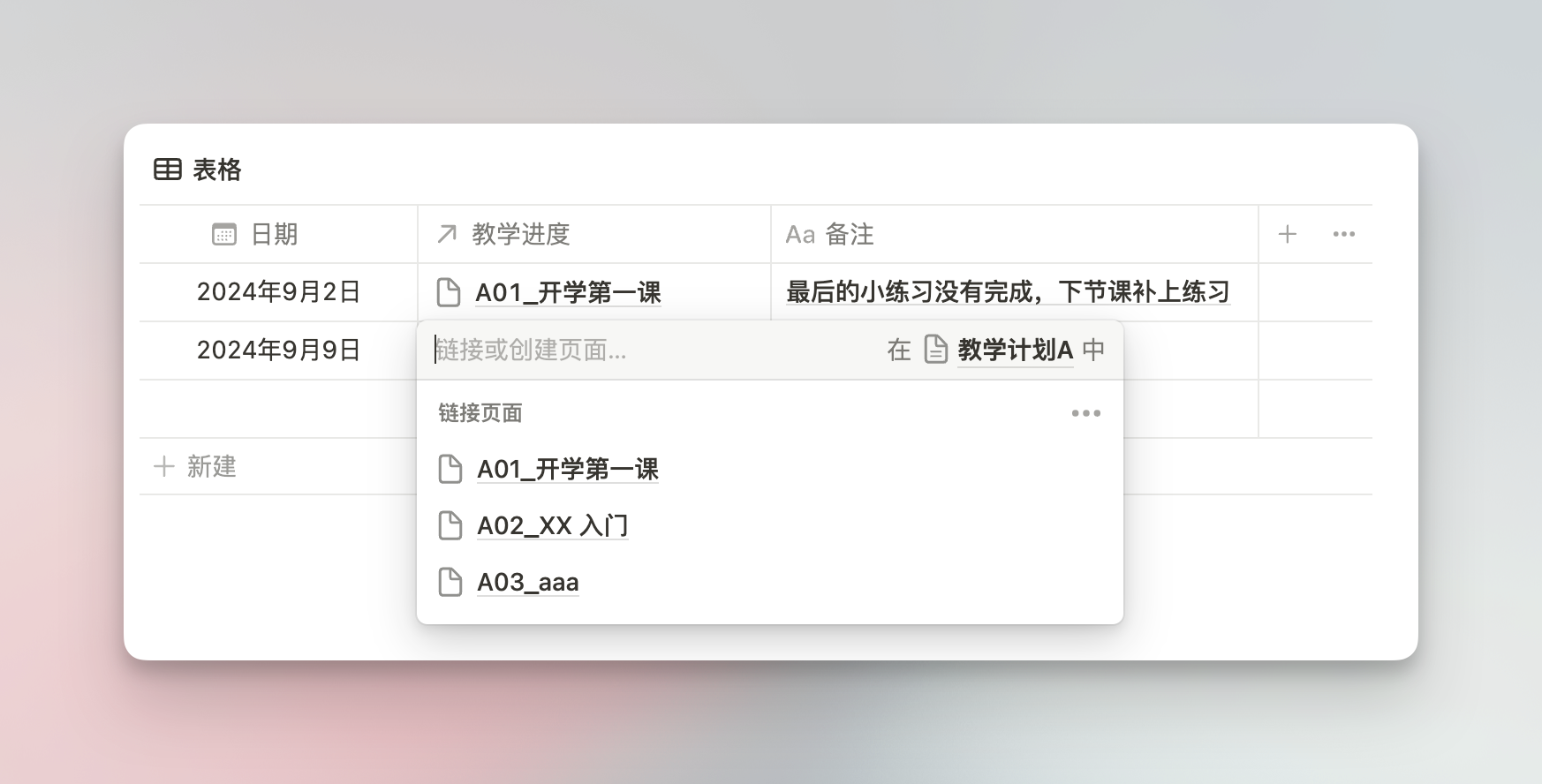 使用 Notion 记录上课进度这几年,即使有时候因为其他事务匆忙去上课,我也可以在课前快速查看当前课程的进度,轻松跟上教学节奏,不再手忙脚乱。